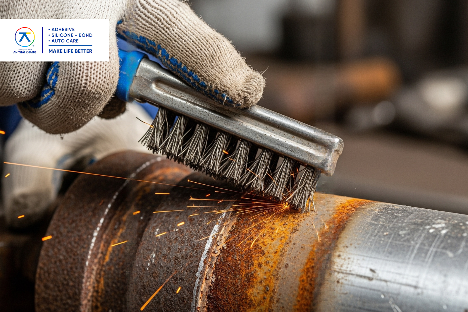 Chà sạch bằng giấy nhám hoặc bàn chải sắt.