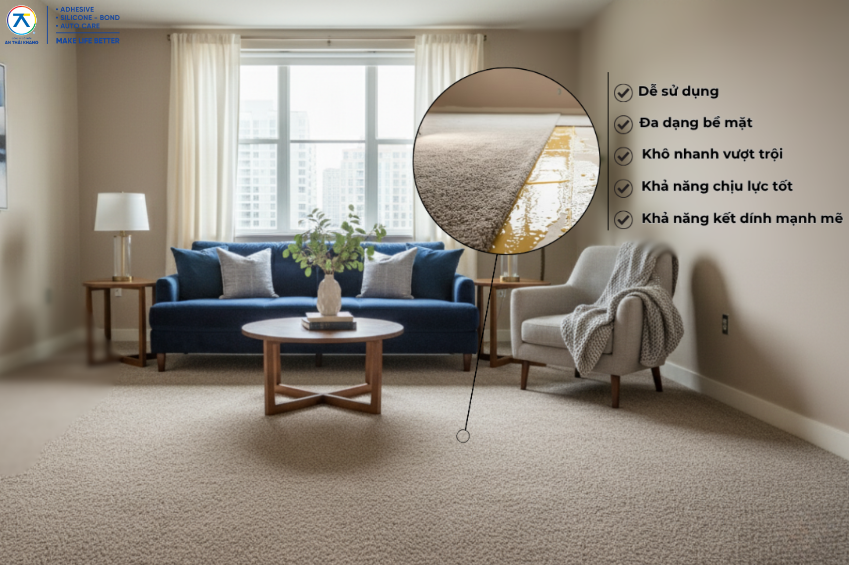 Không chỉ giúp liên kết vật liệu chắc chắn, dòng keo này còn giúp tối ưu tốc độ sản xuất và giảm lỗi bong tróc trong quá trình sử dụng.