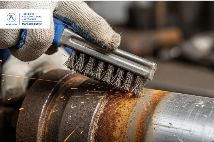 Chà sạch bằng giấy nhám hoặc bàn chải sắt.