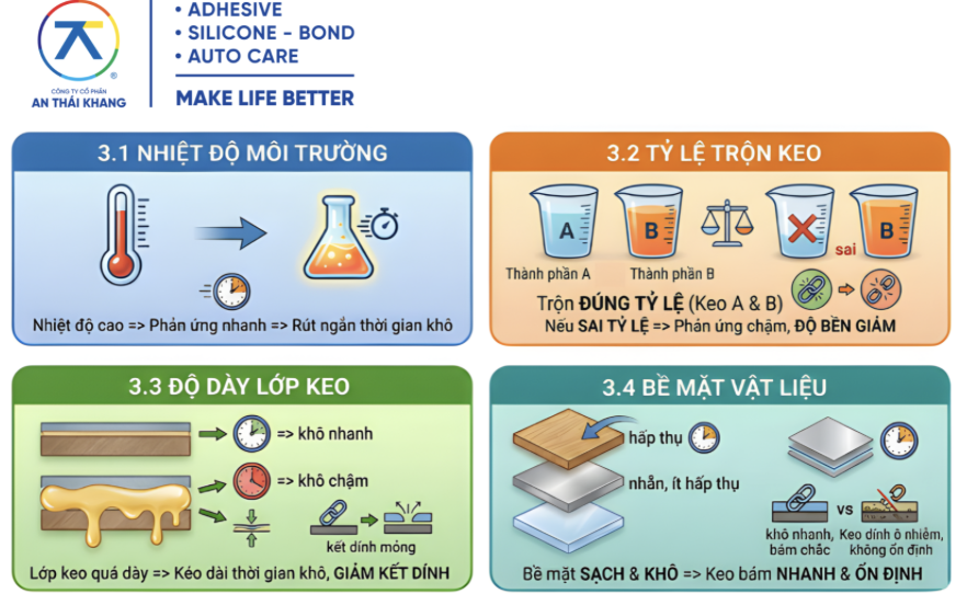 3. Những yếu tố ảnh hưởng đến thời gian khô của keo AB