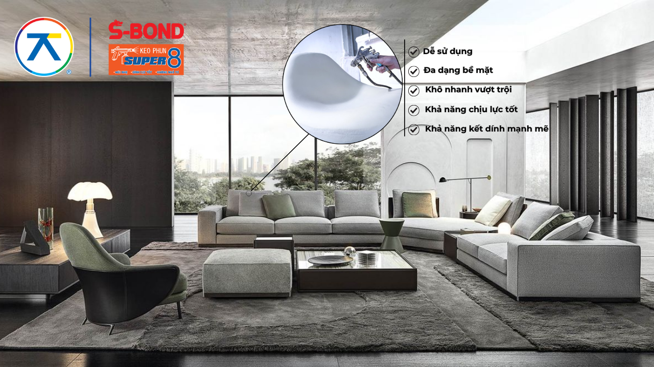 Keo phun S-BOND Super 8 là dòng keo phun thế hệ mới ứng dụng công nghệ cao, mang lại hiệu quả kết dính vượt trội và thân thiện hơn với người sử dụng.