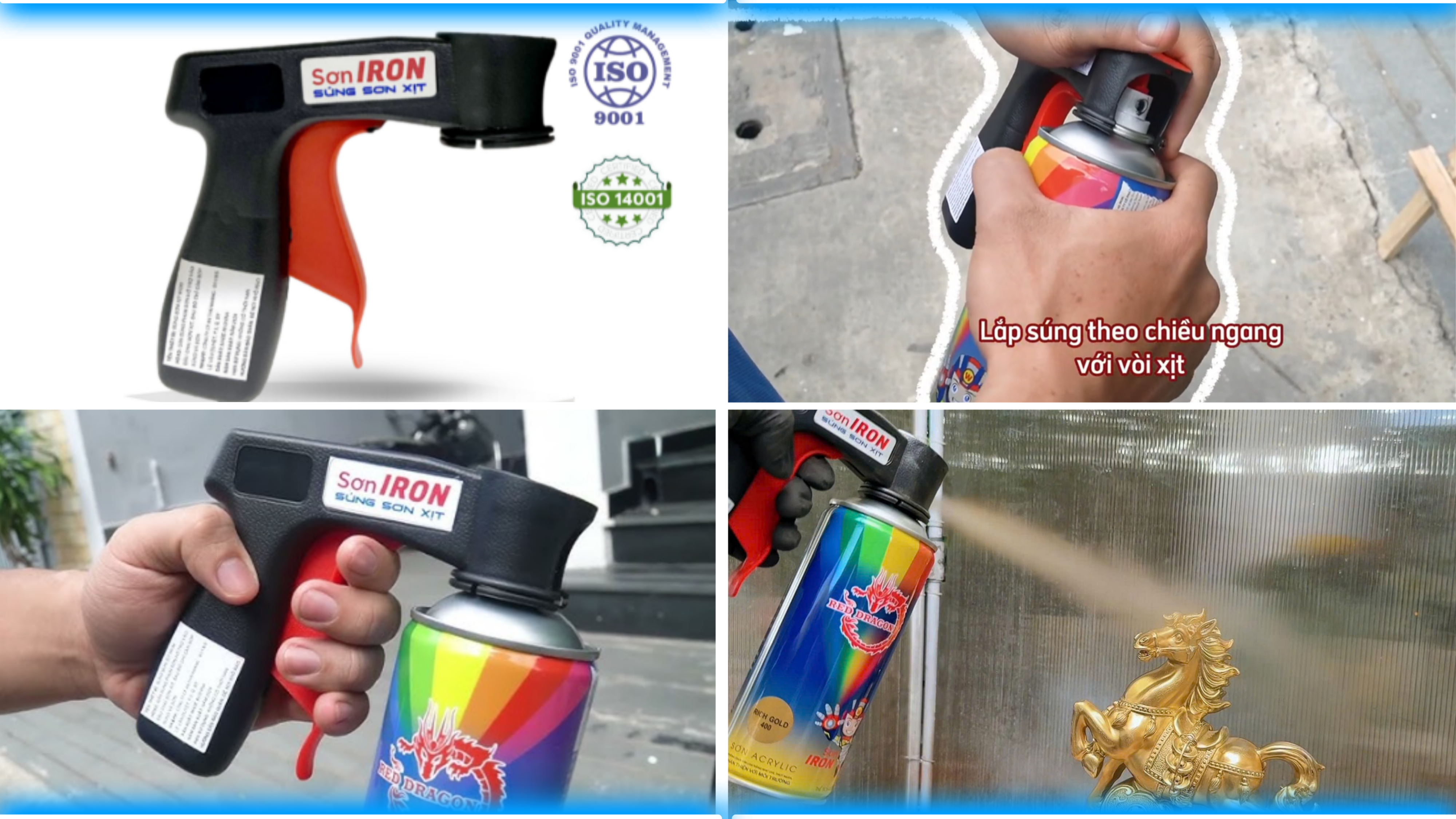 Súng được thiết kế tương thích hoàn toàn với hầu hết các dòng sơn xịt thông dụng trên thị trường như IRON, MIRA,... mang đến giải pháp phun sơn nhanh – gọn – đẹp cho cả công nghiệp lẫn sử dụng tại nhà.